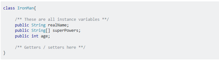 Now this IronMan Class can be instantiated in other class to use these variables