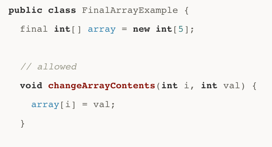 Q : Can you change the contents of a final array as shown in the code snippet below?